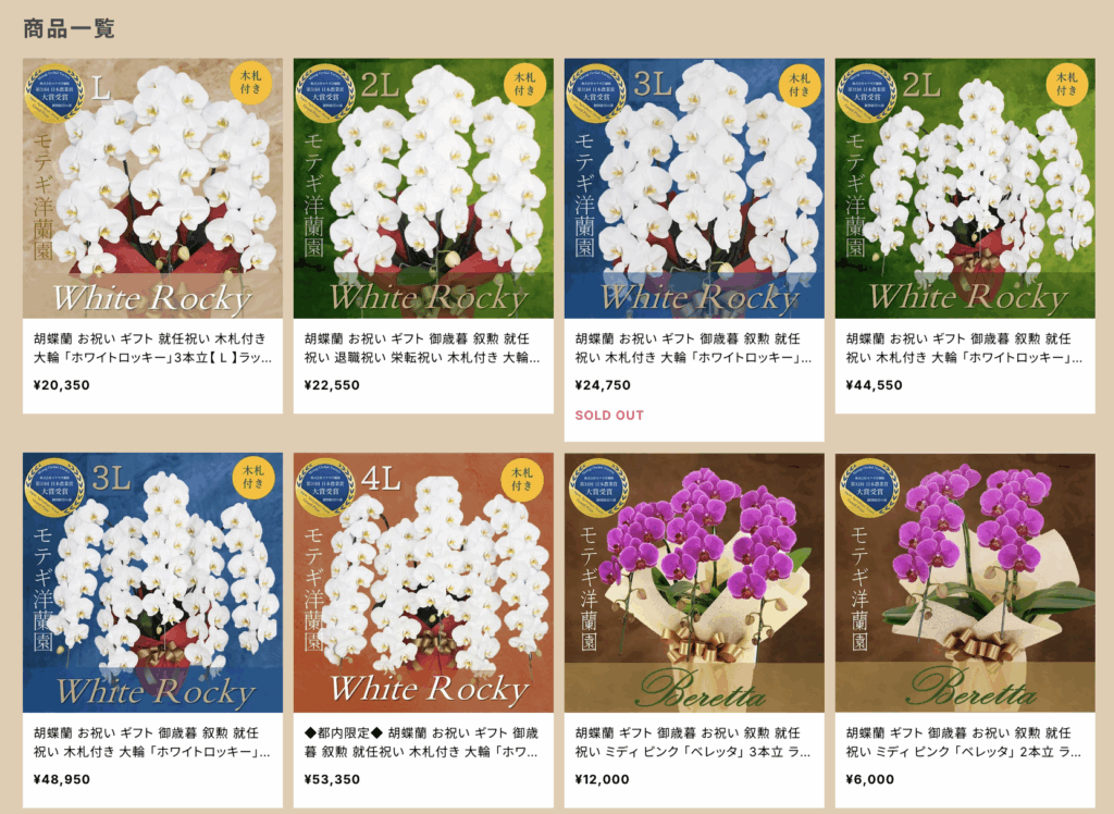 完売状況や販売商品は時期などにより随時変化していくので気になった方は、「モテギ洋蘭園通販サイト」でをチェックしてみてください📲