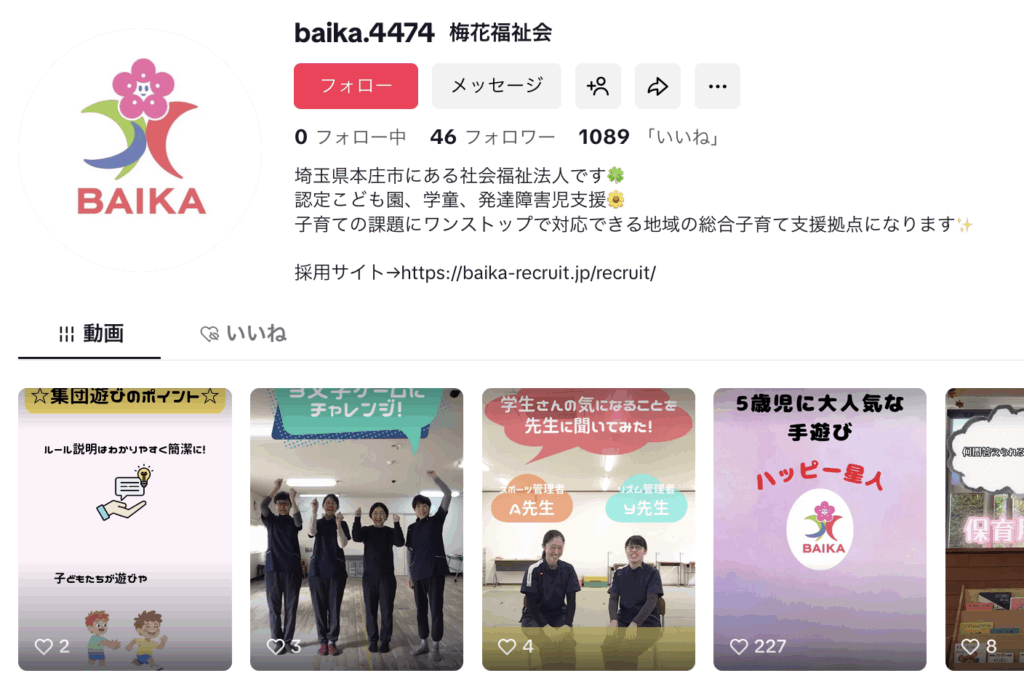 また、2025年より「梅花福祉会公式TikTok」をスタートしました📲