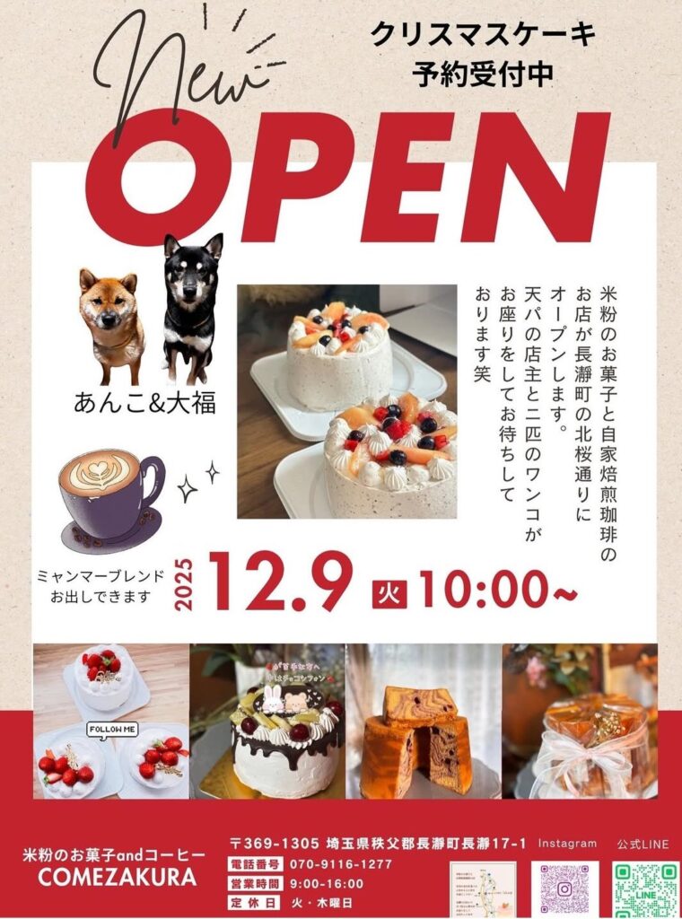 長瀞町長瀞に「COMEZAKURA」という米粉のお菓子と自家焙煎コーヒーのお店がオープンするみたいです。