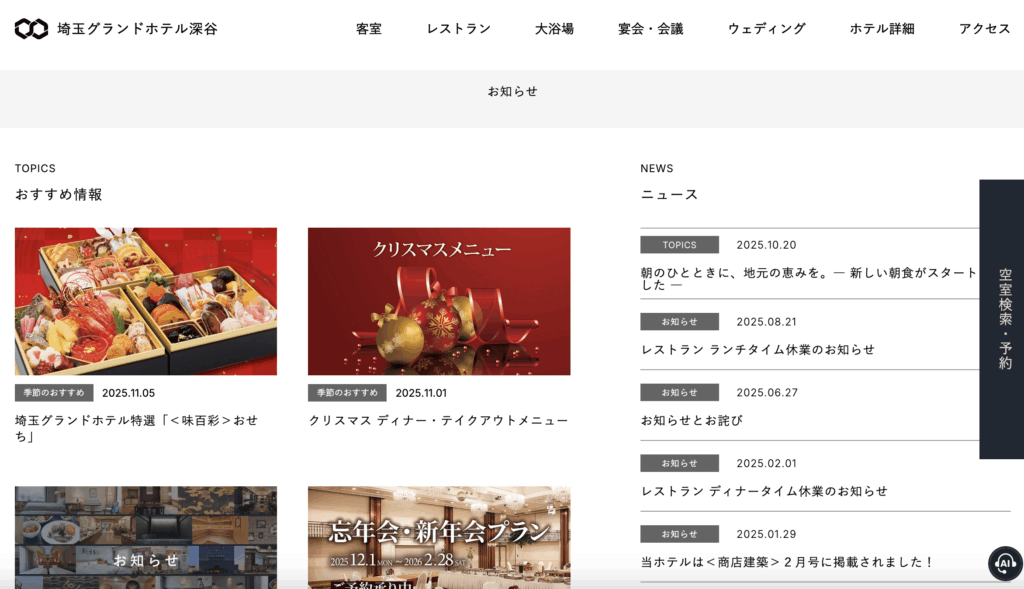 ※その他の情報を知りたい方は、「埼玉グランドホテル深谷」のお知らせをチェックしてみてください📲