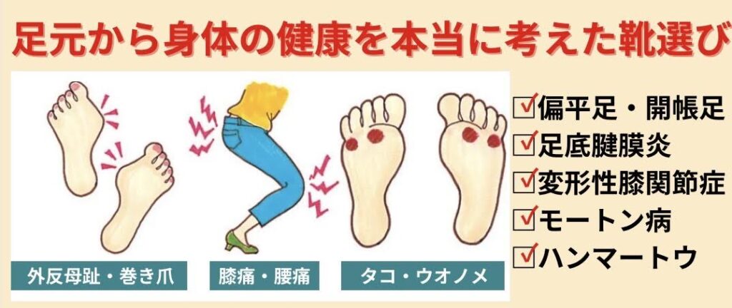 今は老若男女問わず、健康重視の方が増えていて「オシャレ靴もいいけど、年齢を重ねても自分の足で快適に歩行できるようになりたい」という考え方が浸透しつつあります。