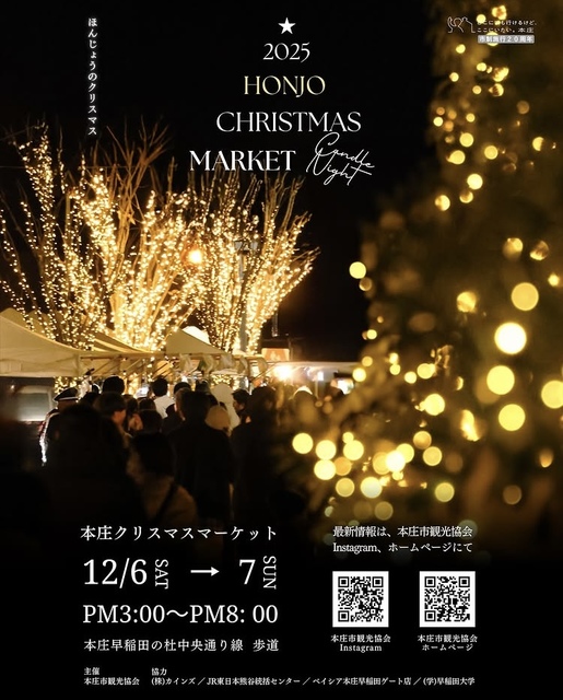 本庄早稲田の杜中央通り線周辺で「本庄クリスマスマーケット2025」が開催されます。
