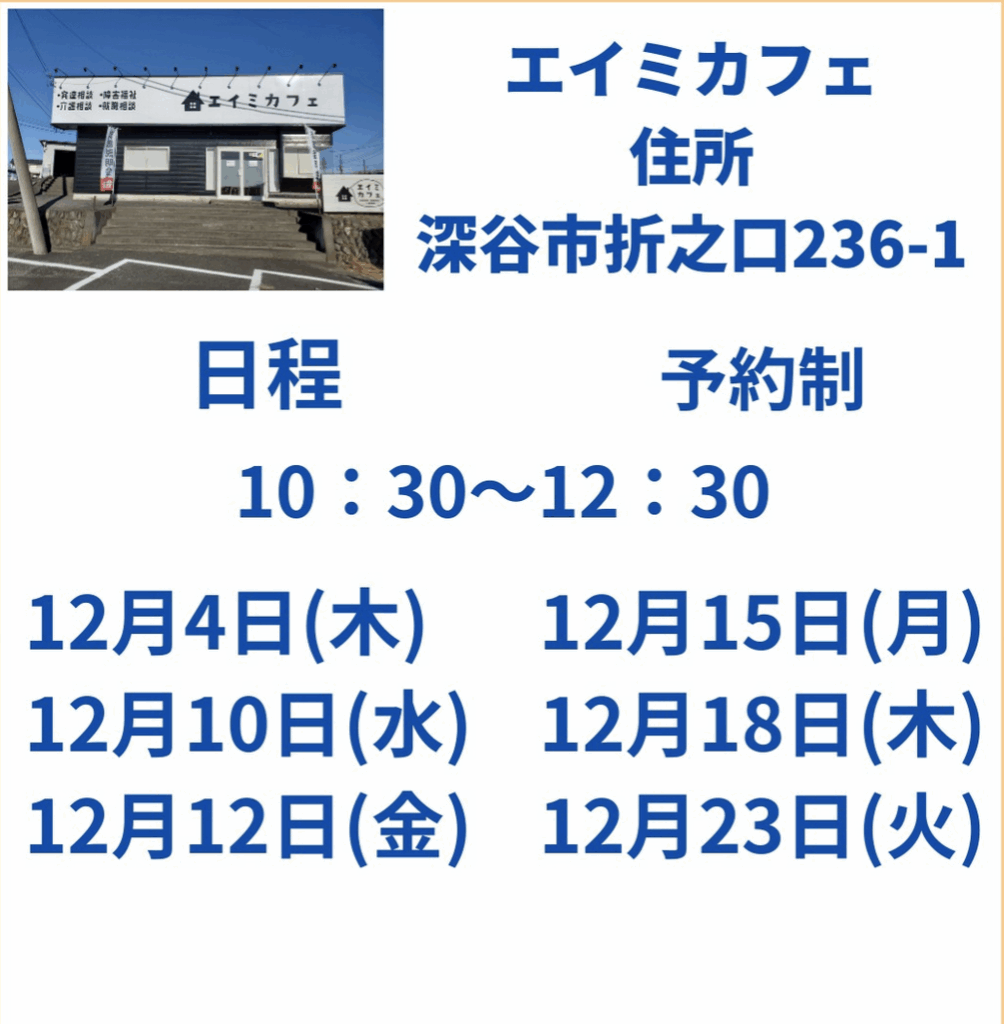これまで「有限会社エイミ」は、深谷市・熊谷市を中心に展開していましたが、11月4日にオープンする「本庄早稲田教室」は本庄市初出店の教室及び「有限会社エイミ」9つ目の運営施設となります✨