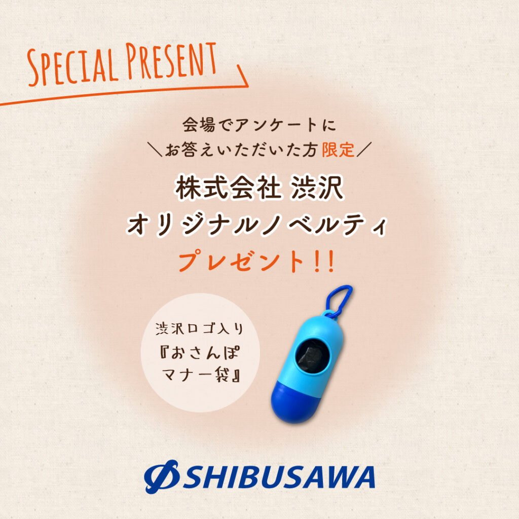 またブースでアンケートにお答えいただいた方には、「(株)渋沢オリジナルノベルティ」をプレゼントいたしますので、 ぜひお気軽にお立ち寄りください🎁