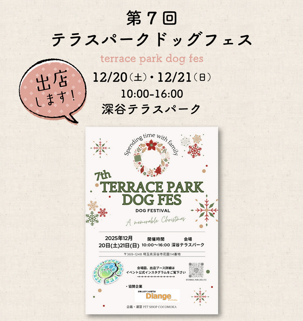 深谷市花園で開催される関東最大級の屋外ペットイベント「第7回 テラスパークドッグフェス」に出店します🐶