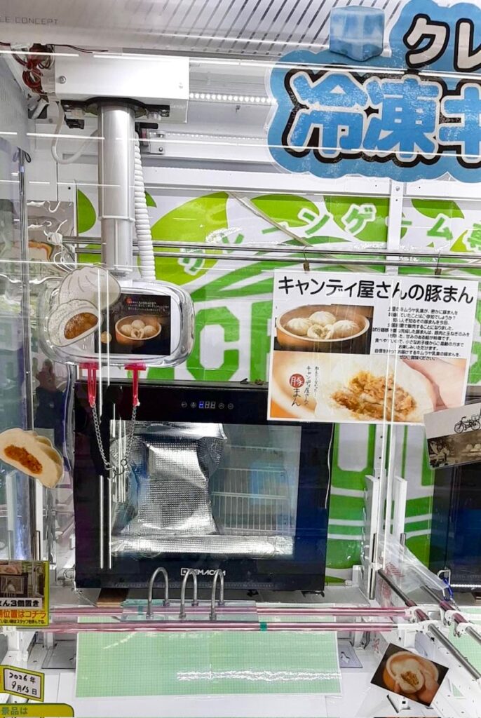 ▲クレーンゲームには保冷袋に「豚まん3つ(中サイズ:1個130g)と保冷剤」が入っています✨