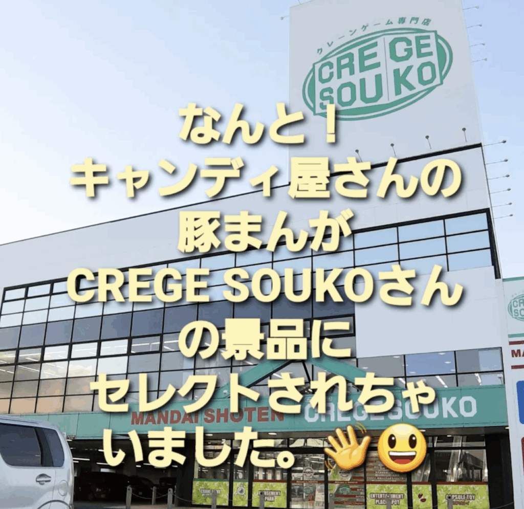 この度『キャンディ屋さんの豚まん』が、クレーンゲームとカプセルトイの専門店「クレゲ倉庫本庄店」の景品にセレクトされました〜😸