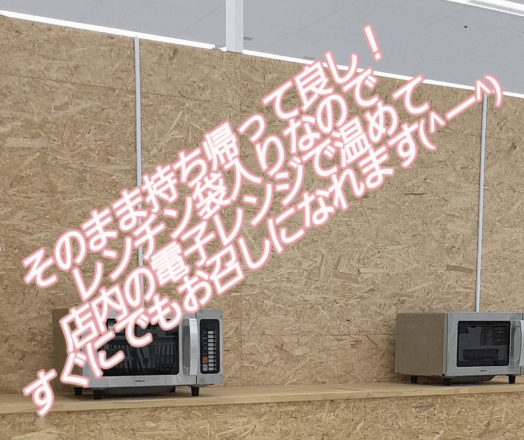 また、ゲットしたらそのまま持ち帰っても良いですし、店内にある電子レンジで温めて休憩スペースで食べることもできます🍽️