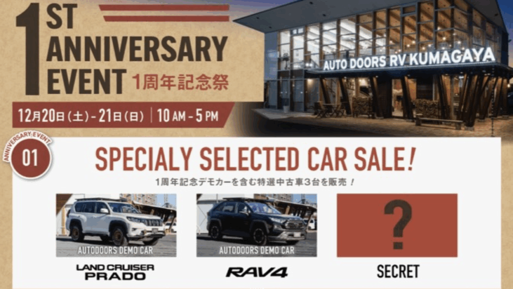 1周年の感謝を込めたイベント「AUTO DOORS RV KUMAGAYA 1st Anniversary Event〜1周年記念祭〜」を開催します🎊✨