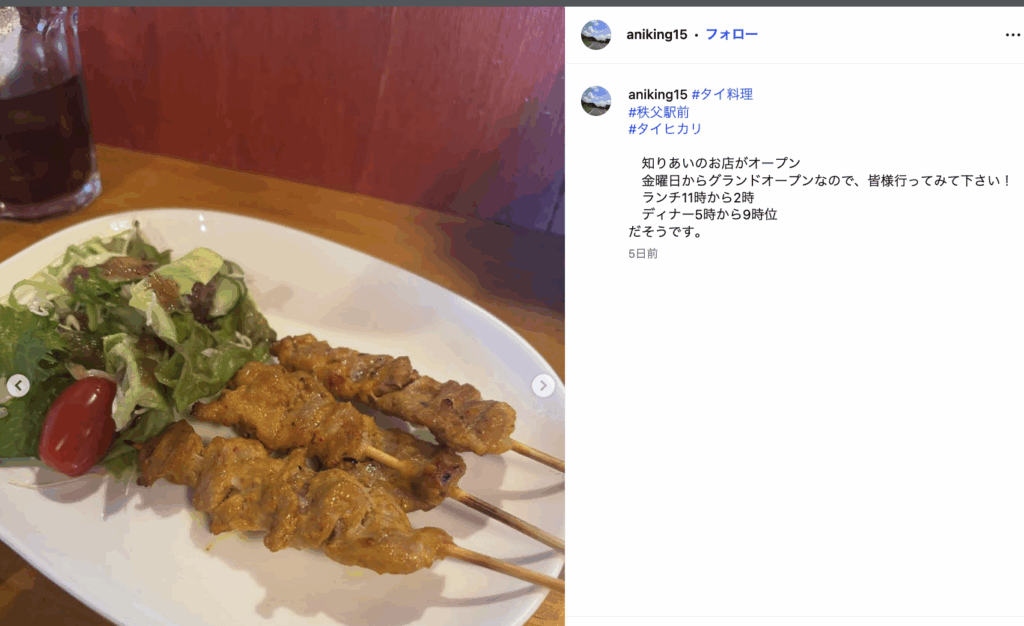 秩父市宮側町にタイ料理屋「ヒカリ・タイ」がオープンしたみたいです。
