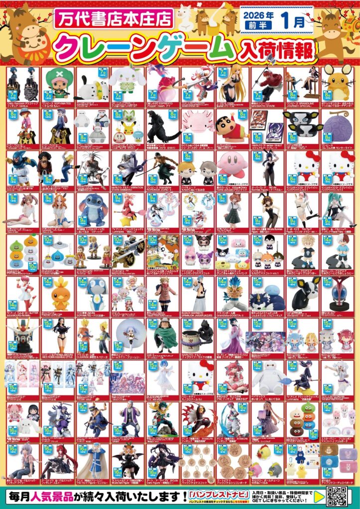 12月&1月クレーンゲーム入荷フィギュアリスト