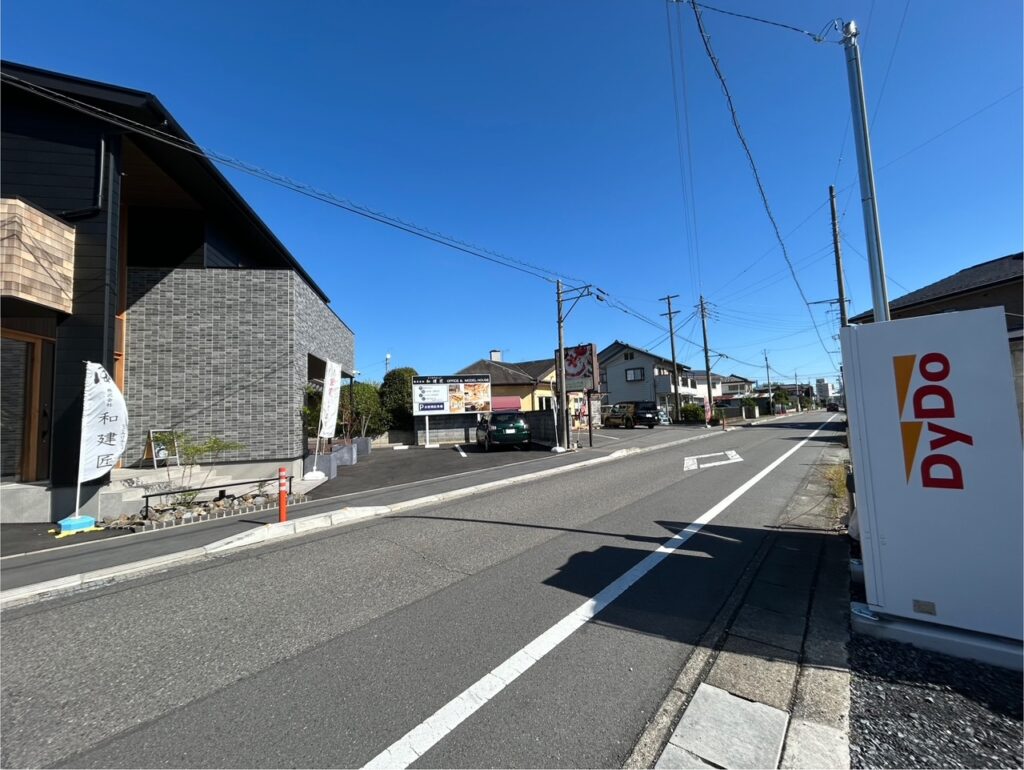 本来なら「モデルハウス」の敷地内に設置した方が会社的には経費がかからないそうなのですが、『モデルハウス内だと利用しずらいと思ったので、ふらっと立ち寄れるように「駐車スペース」に設置しました』とのこと。