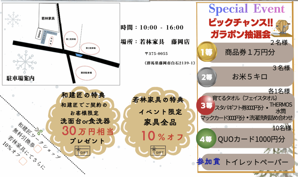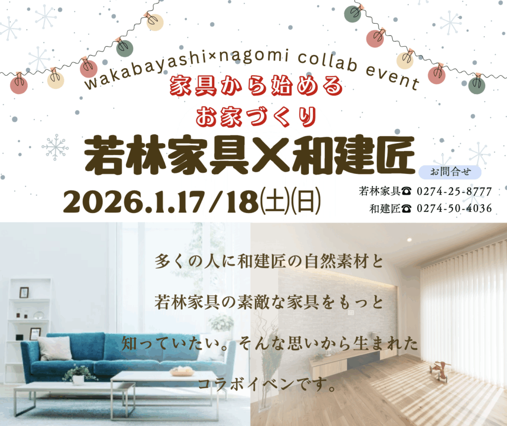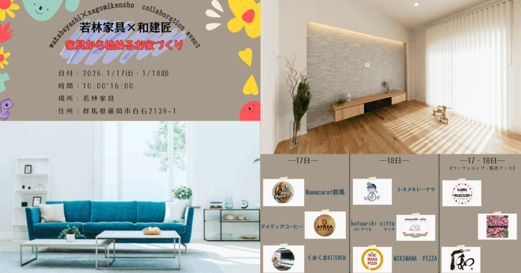 藤岡市にある「若林家具」さんで「和建匠」初のコラボイベント「家具から始めるお家づくりin藤岡」が開催されます😸