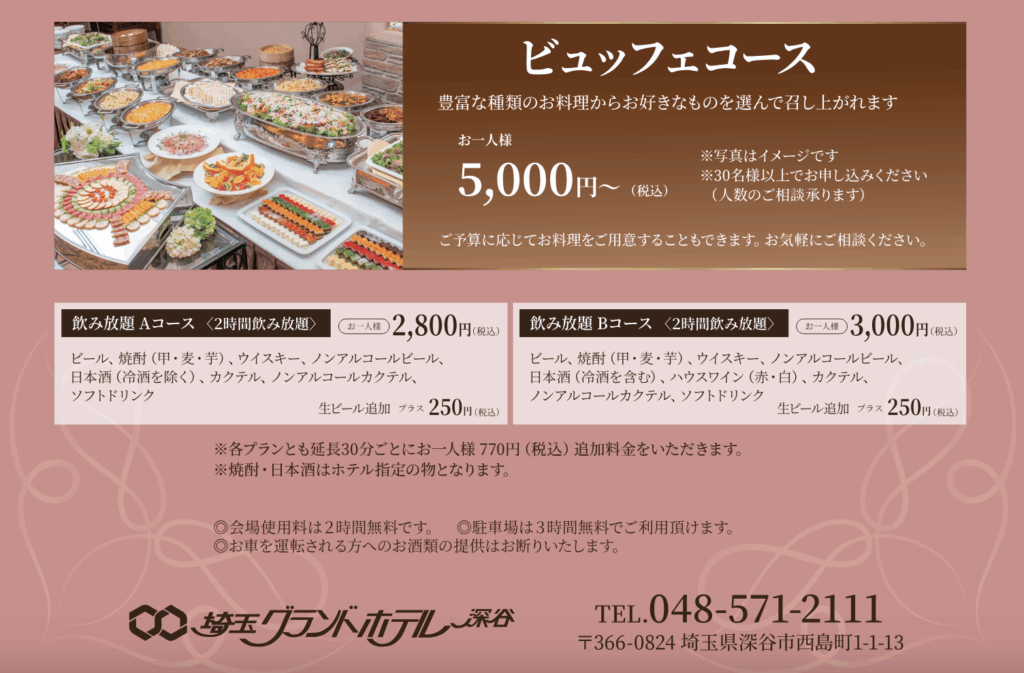 「埼玉グランドホテル深谷」では、お得なパーティープランをご紹介〜✨