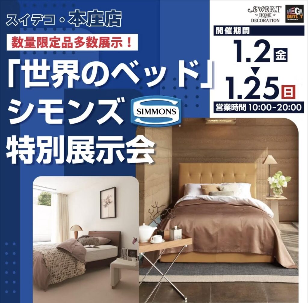 2026年春の業務変更に伴う「進化のための閉店セール」を開催中の埼玉県本庄市にある”家具・インテリア・雑貨・アパレル専門店”「スイデコ・本庄店」が、世界のベッドメーカー「シモンズ」のベッドがアウトレット価格で購入できる『シモンズフェア in スイデコ・本庄店』を開催します!