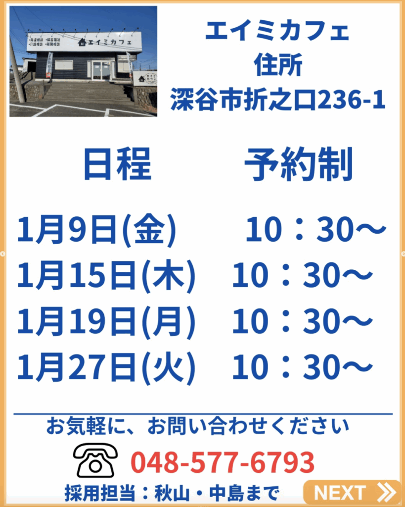 埼北エリア(本庄市・深谷市・熊谷市)で児童福祉事業・高齢者介護事業施設を運営している「有限会社エイミ」が『2026年新春 就職・転職説明会』を開催します😸