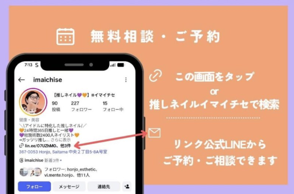 ※決済方法については各施術者のインスタからDMでお問い合わせください。