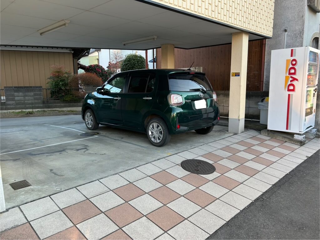 ▲お客様専用駐車場が1台分あります(自動販売機の隣の区画)