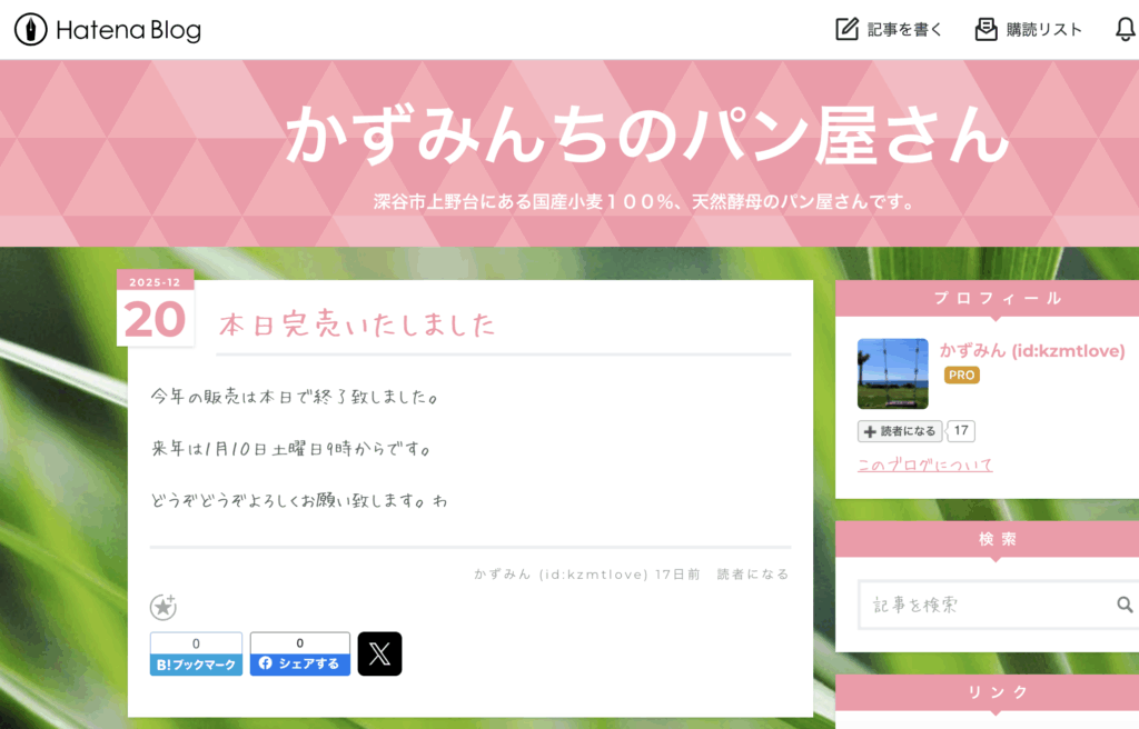 ・販売2日前には「かずみんちのパン屋さん(Hatena Blog)」