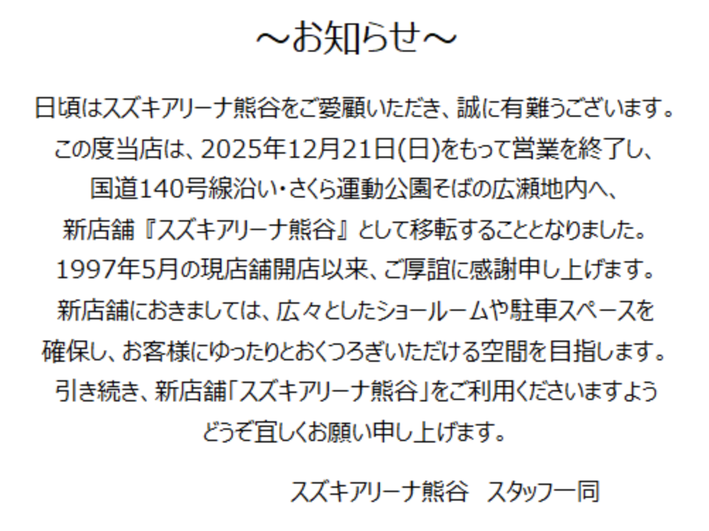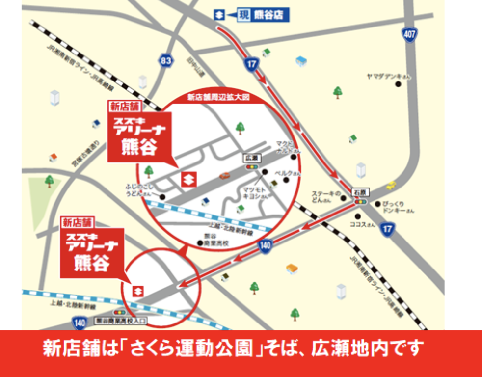 熊谷市広瀬に「スズキ自販埼玉 スズキアリーナ熊谷」がオープンしたみたいです。