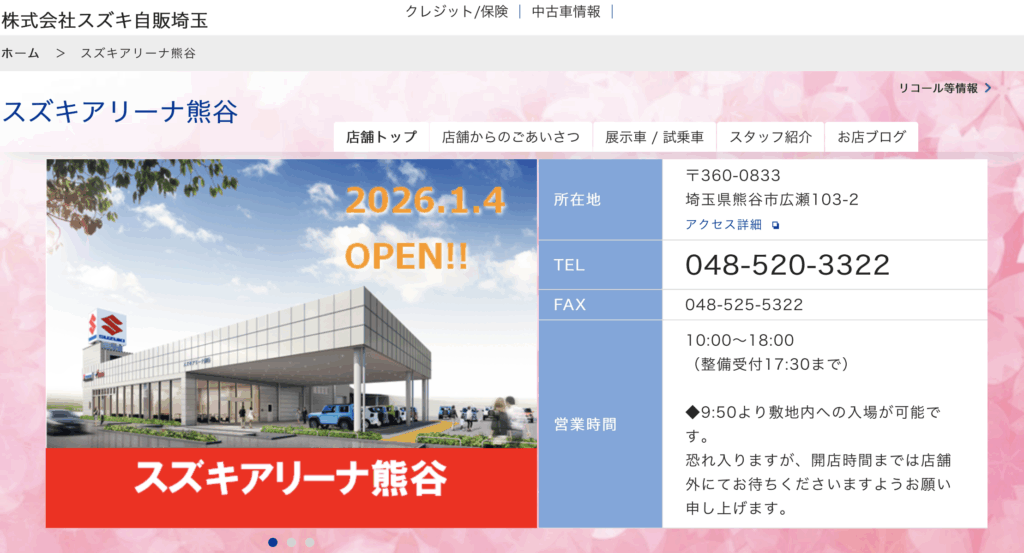 ◆店名/スズキ自販埼玉 スズキアリーナ熊谷