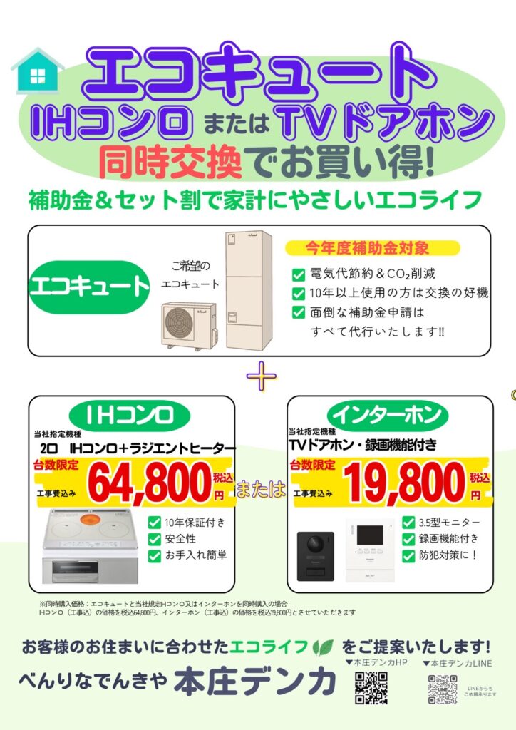 「本庄デンカ 深谷店」オープンを記念して、公式LINEご登録者様限定で「IHクッキングヒーター」を交換工事費込みのお得価格で購入できる「深谷店オープンセール」を開催しています✨
