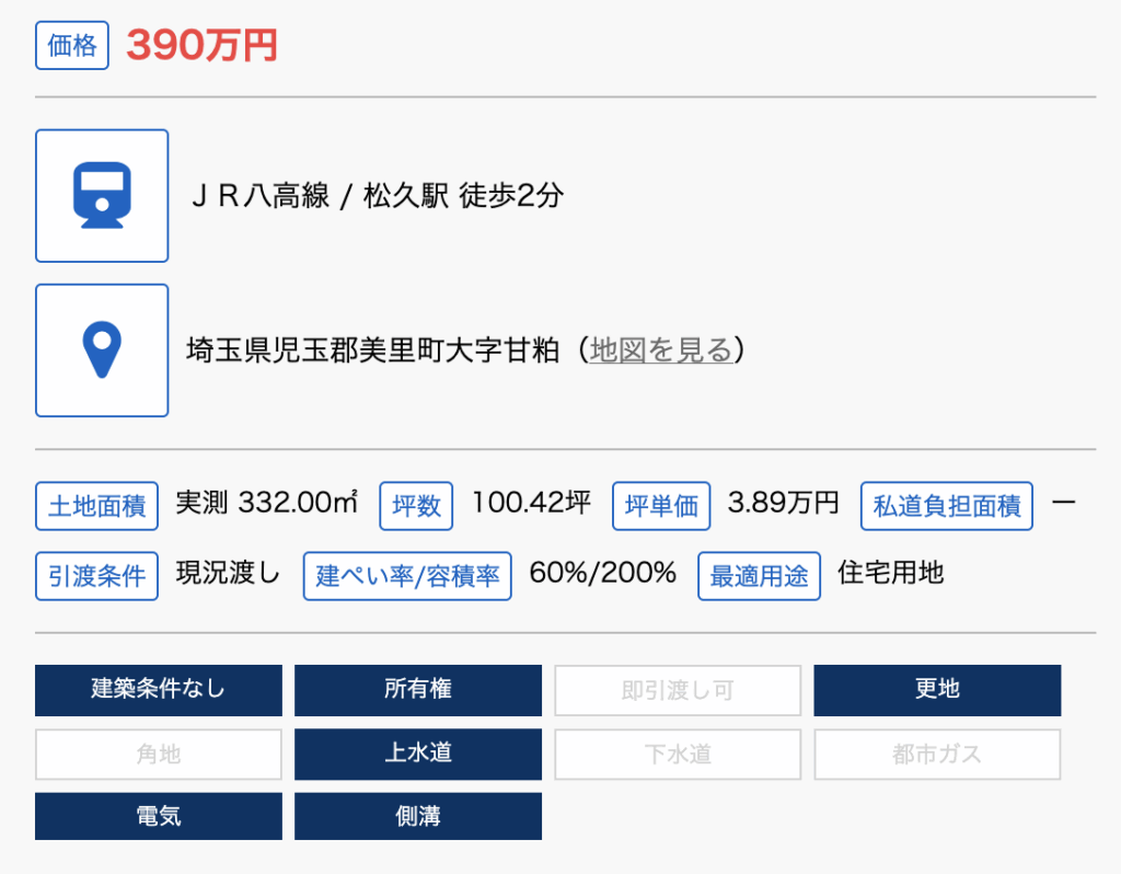 児玉郡美里町甘粕 (松久駅) 住宅用地