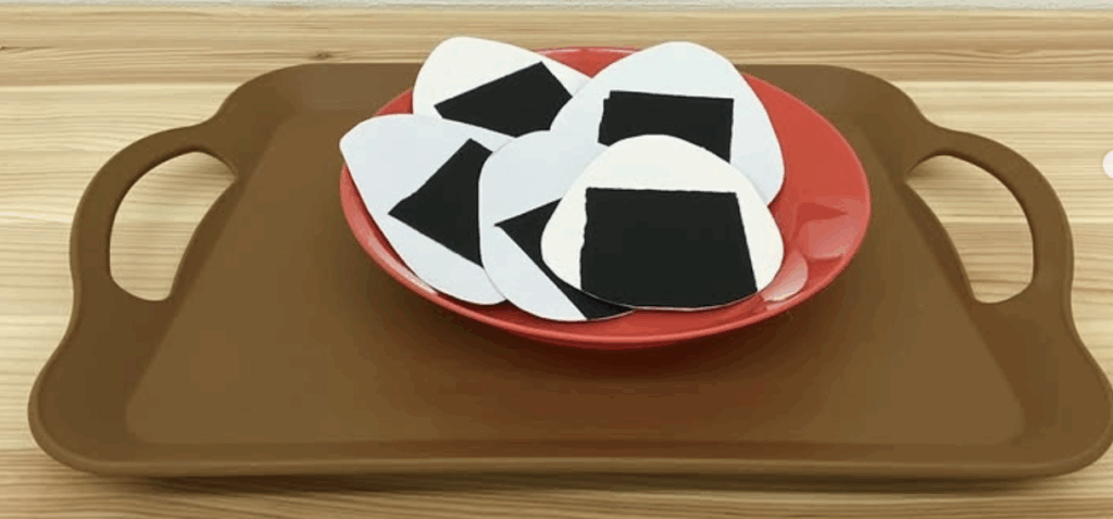 画用紙で作ったおにぎりを使って、「同じものをみつける」あそびです😊