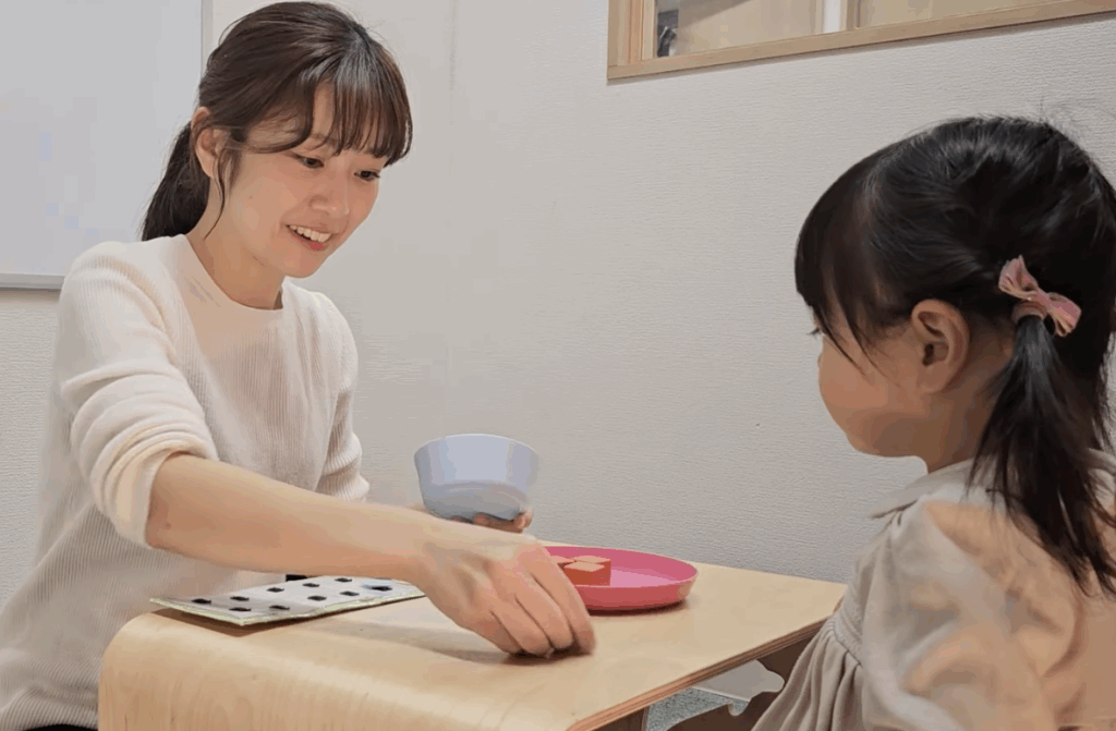 個別のプログラムで定着したら、今度は別の場面でも学習したことを使ってもらえるように、遊びの中や集団生活の中など意図的に場面作りをして、練習の機会を作っていきます。