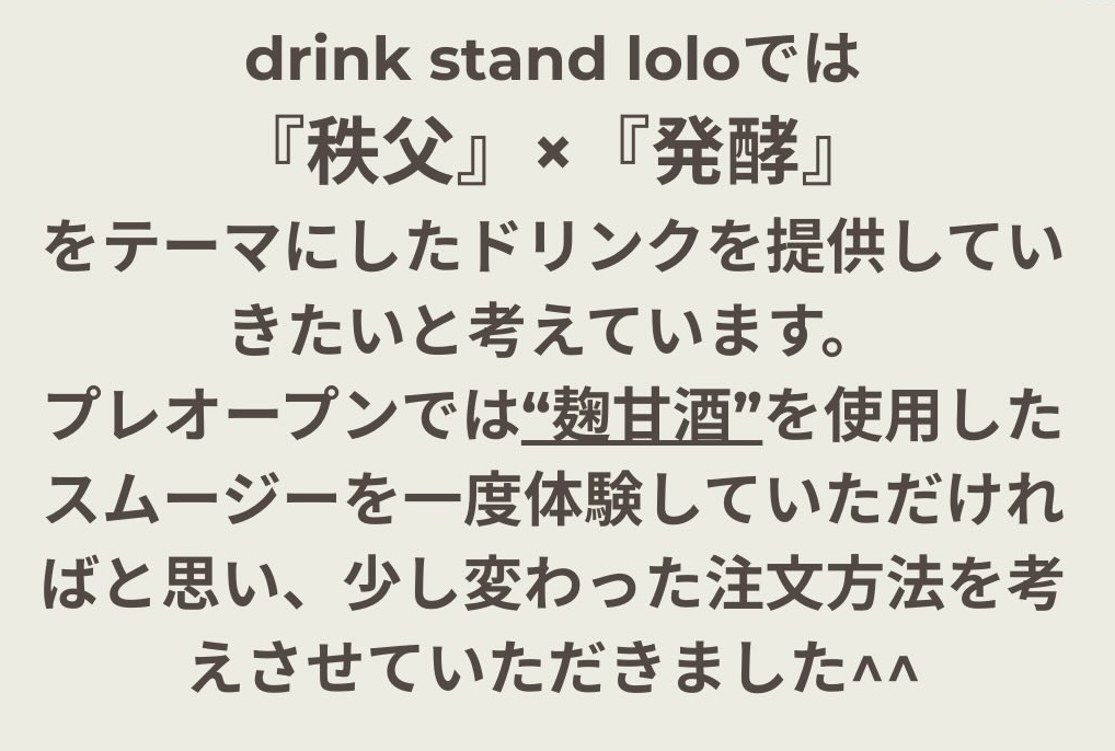 秩父市東町に「ドリンクスタンド lolo(ロロ)」がオープンしたみたいです。