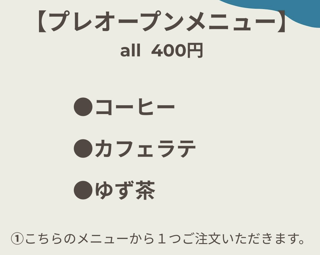 プレオープンメニュー↓