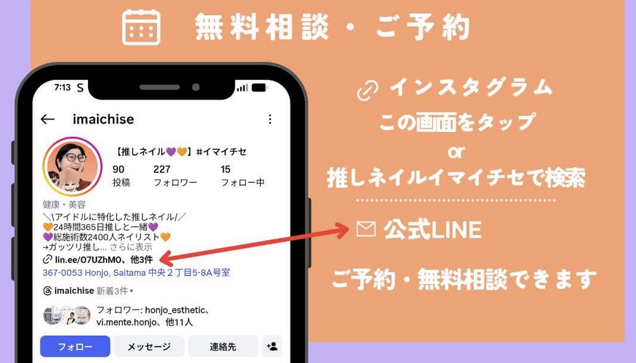 だから遠慮なく推しの話をしながらあなたの“推しへの愛”をネイルで表現出来るはずなので、お気軽にお問い合わせください📲