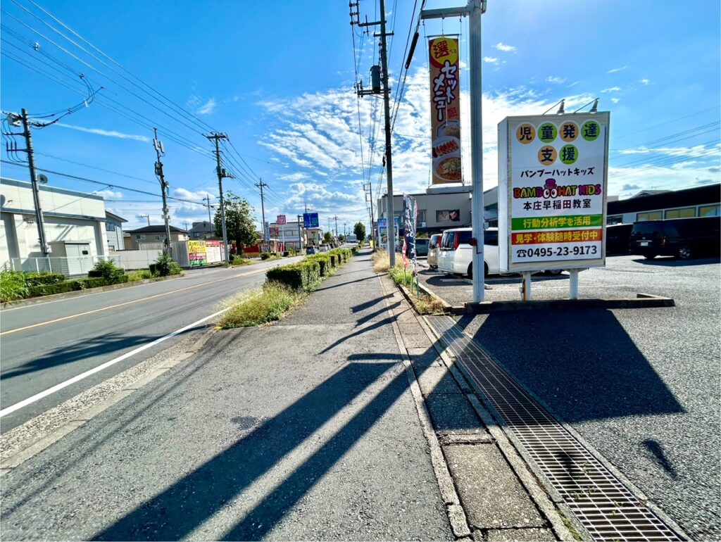 ▲近くには「おおぎやラーメン 本庄店店」「いってつ食堂」「Oggi Hair 本庄店」、さいつうパートナーの「バンブーハットキッズ本庄早稲田教室」などがあります。