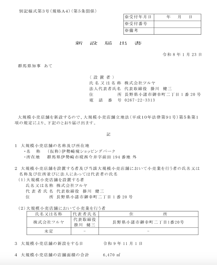 ◆届出年月日/令和8年(2026年)1月23日