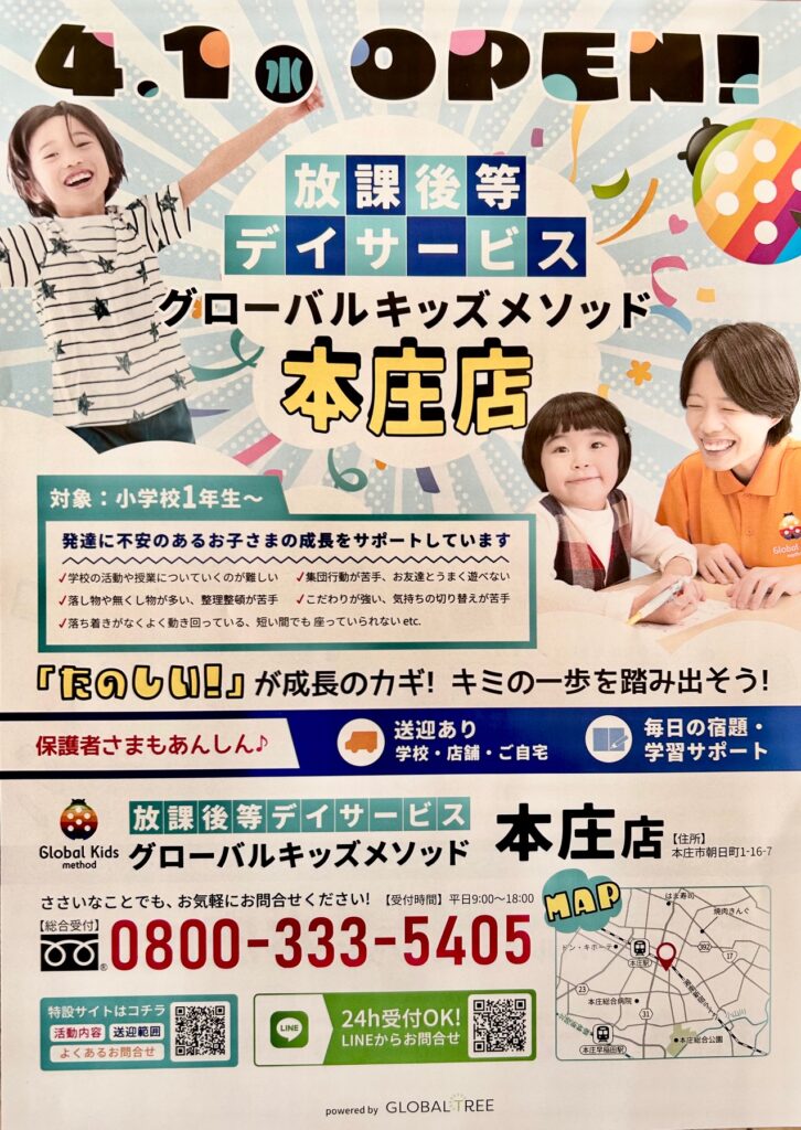 本庄市朝日町に、放課後等デイサービス 「グローバルキッズメソッド本庄店」がオープンするみたいです。