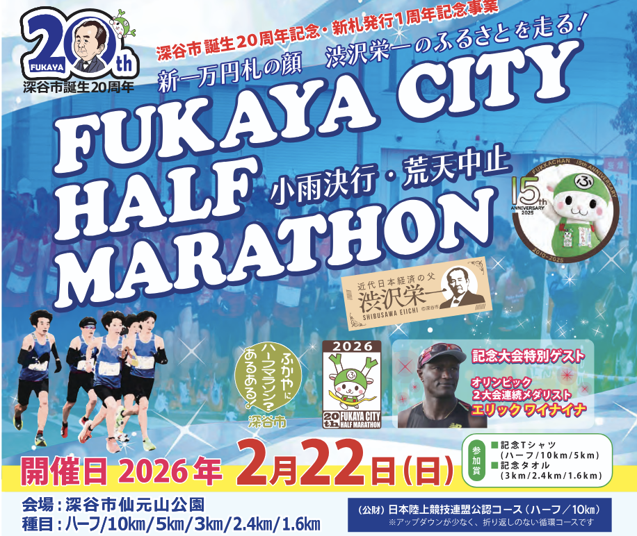 2026年2月22日(日)に「第20回 ふかやシティハーフマラソン」が開催されます。