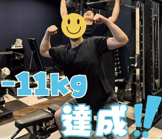 意気込みが強いお客様で自らキツめのトレーニングを希望し、さらに食事制限にしっかり取り組み「絶対やり遂げる!」という気持ちが垣間見れたのと、目標値が大きいので4ヶ月コースでご入会いただきました。