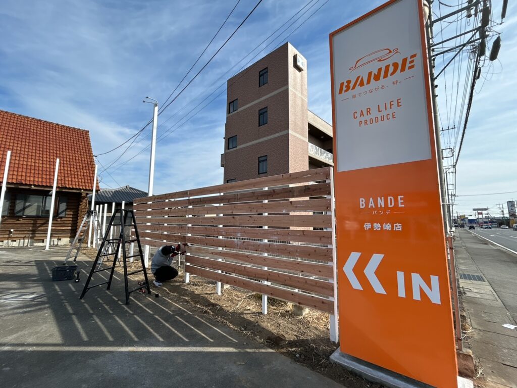 2026年2月27日(金)群馬県伊勢崎市連取町にオープン予定の車買取&中古車販売ショップ「BANDE(バンデ)伊勢崎店」の看板施工なども行なっています✨