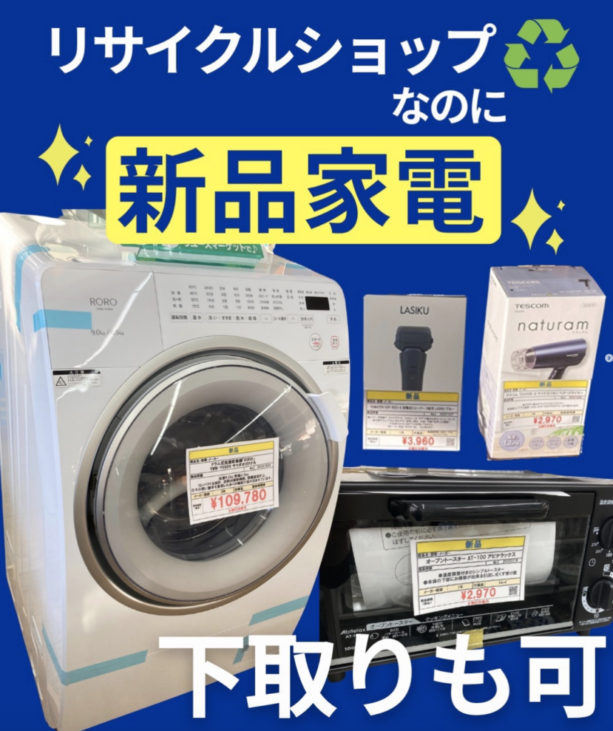 リサイクルショップですが「新品家電」も取り扱っています♪