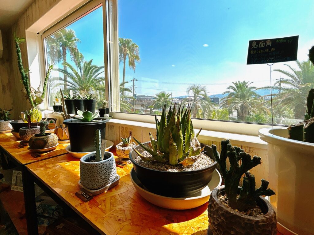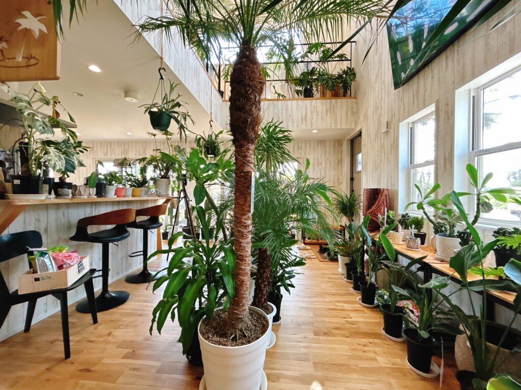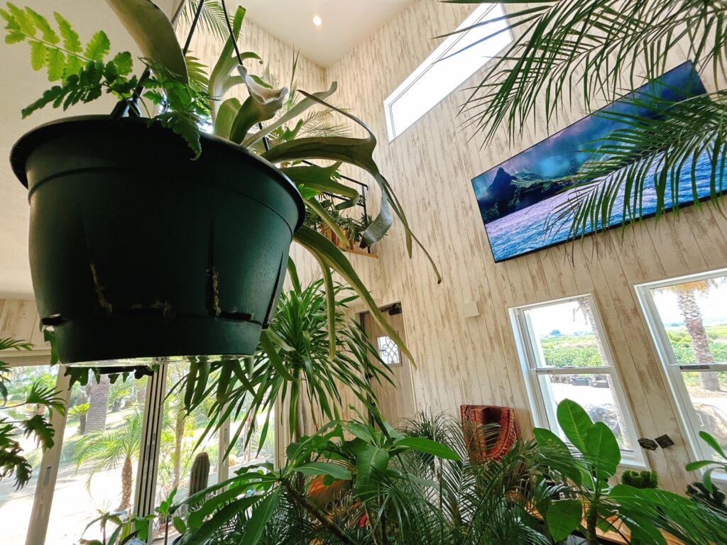▲2階から展示場にあるヤシの木などを眺めることができ、その景色はまるで南国に来たかのような感覚になること間違いなしです😸