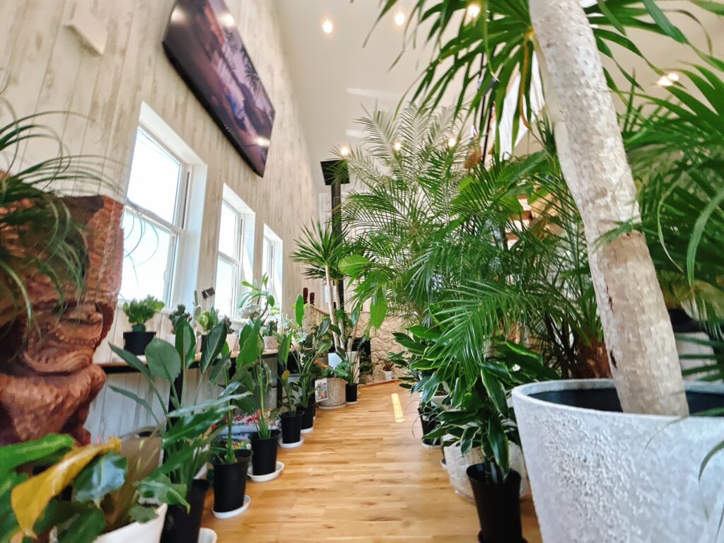 ▲2階スペースには、ハワイ好きの店主さんが厳選した本場ハワイの雑貨や室内植物が展示販売されています🏝️