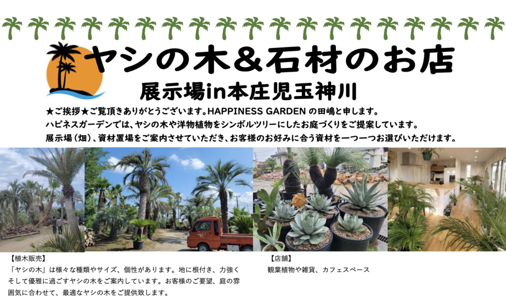 神川町八日市にあるヤシの木&石材専門店「ハピネスガーデン」さんが、2026年3月より「さいつうパートナー」になりました😸