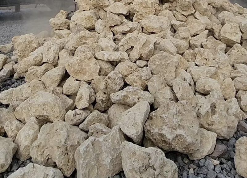 ◆特徴:多孔質(表面に無数の小さな穴がある)、吸水性が高い、象牙色、サンゴの化石が混ざる。