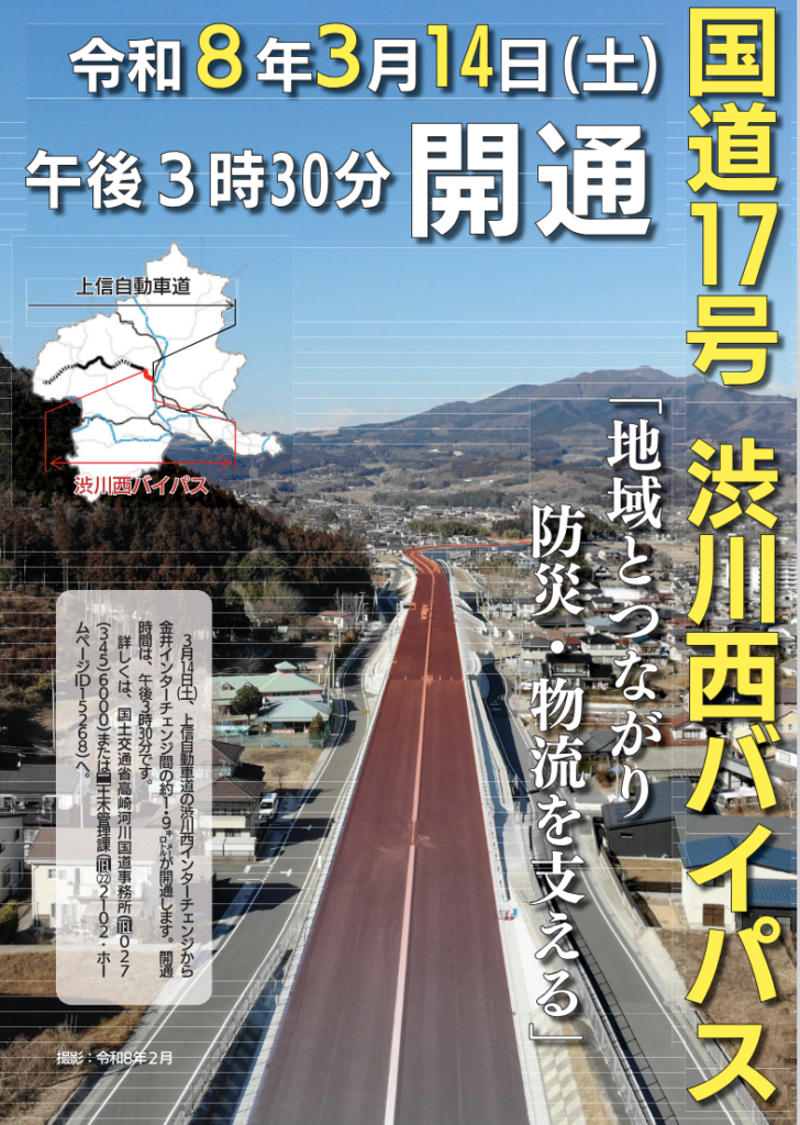 #国道17号 #渋川西バイパス は明日3月14日(土)15時30分に開通します。