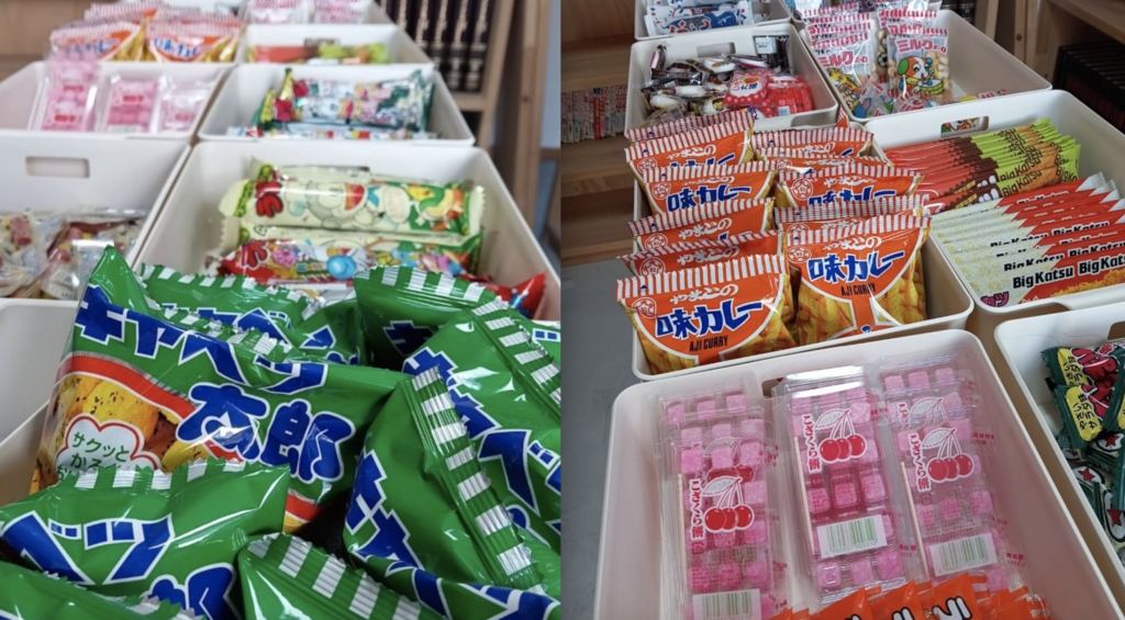 「駄菓子販売会」では、陳列されているお菓子5つを100円で購入(決済は現金のみ対応)できます!