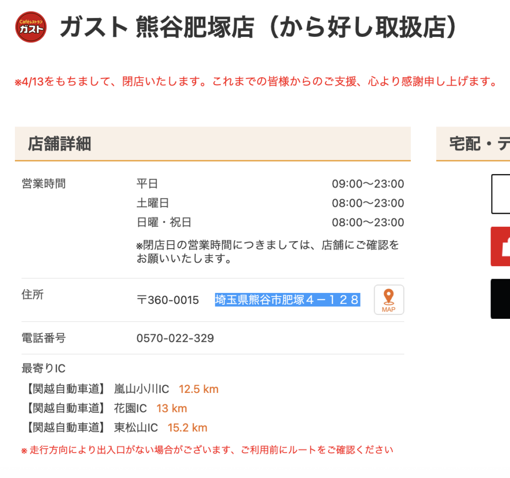 熊谷市肥塚にある「ガスト 熊谷肥塚店」が閉店するみたいです。