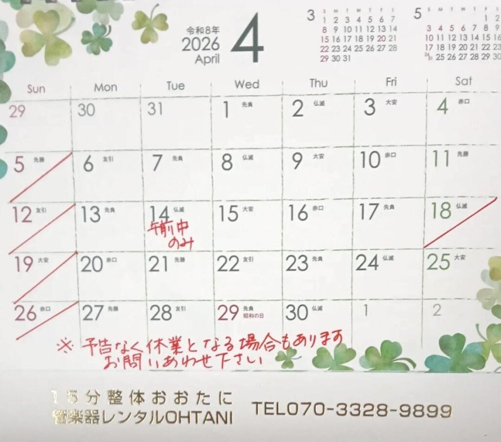 ※予告なく休業する場合がございますので、お気軽にお問い合わせください。