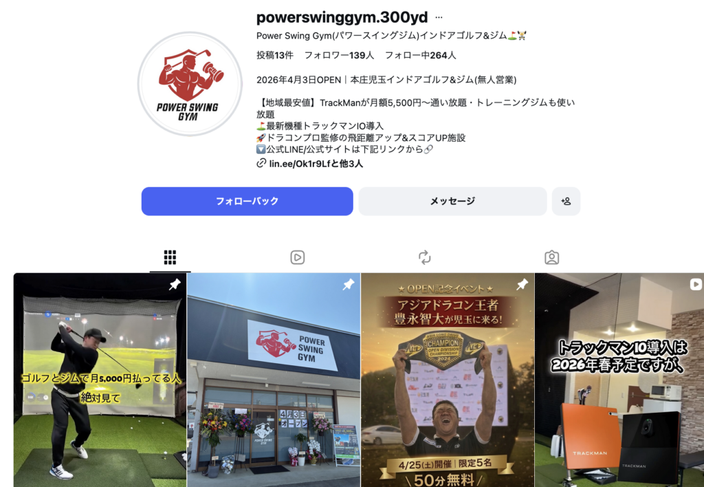 本庄市児玉町に「POWER SWING GYM(パワースイングジム)」っていう無人営業インドアゴルフ&ジムがオープンしたみたい。