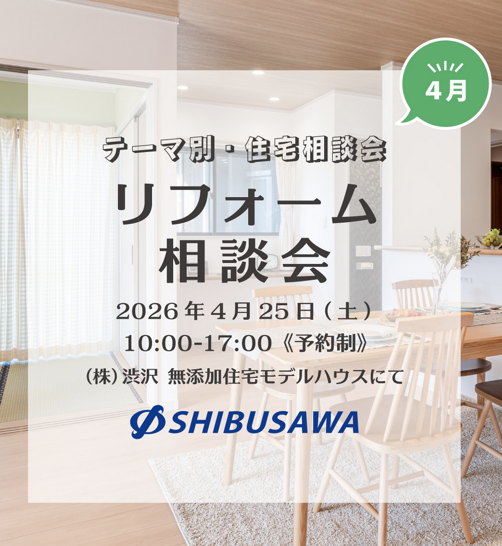 深谷市上柴町東にある「 (株)渋沢 無添加住宅モデルハウス」で『テーマ別 住宅相談会』が開催されます😸