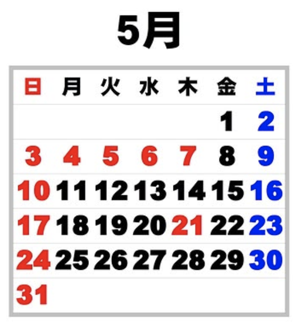 3日(日)・4日(月)・5日(火)・6日(水)・7日(木)・10日(日)・17日(日)・21日(木)・24日(日)・31日(日)